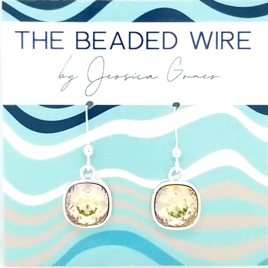 "Exclusive" Imported Cushion Cut Crystal on Sterling Silver Hooks